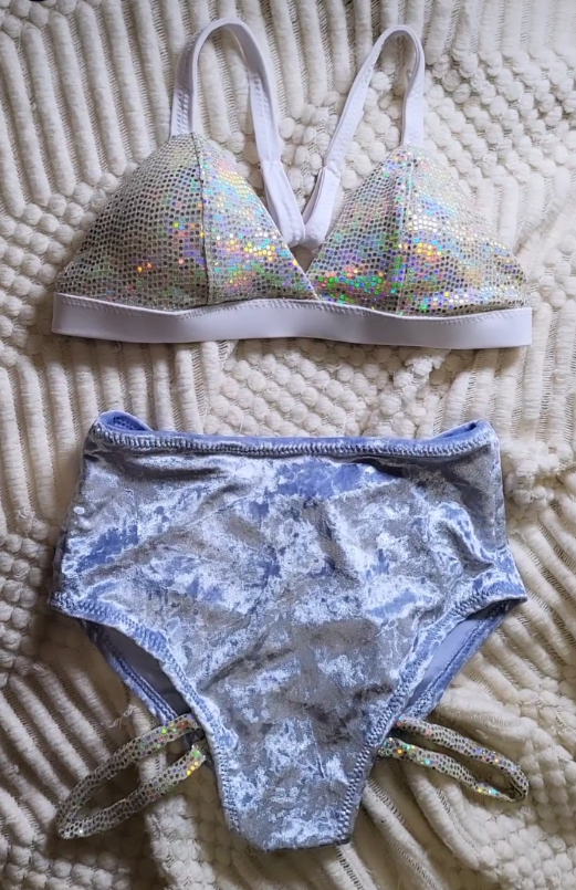 MissMatch Boobies Bra Iridescence white sparkle White chest band n shoulder straps 350hkd Crushed ice baby velvet Highwaist monostrap 300 hkd
